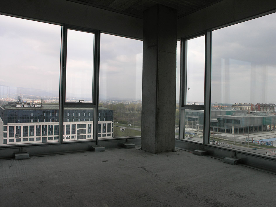 istovremeno realizirati potrebe korisnika i izbjeći zamku zatvaranja pročelja pozicioniranjem soba uz pročelje projektantski je cilj ostvaren postavom međusobno odvojenih volumena zatvorenih soba i strateški pozicioniranim hodnicima koji obostrano prodiru do staklenog pročelja. tako nastali procjepi između zatvorenih blokova soba spajaju interijerski prostor sa širim kontekstom eksterijera. interijerizacijom eksterijera istovremeno se doživljava i zatvoreni prostor i kontekst lokacije ambiciozno pozicioniranog poslovnog tornja te se afirmira demokratičnost jer pravo na pogled i dnevno svjetlo imaju svi korisnici prostora.